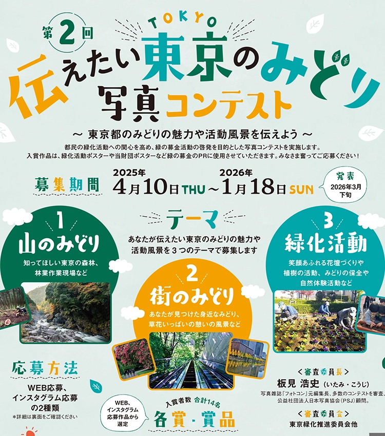 森林の整備、緑化の推進の意義に対する都民の理解を広めるとともに、都民全体による森林整備や緑化の取組を推進し、区市町村等と連携して、緑の募金の適正な運営に努めています。