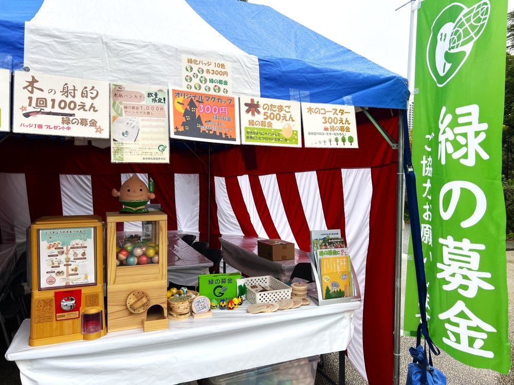 東京緑化推進委員会のブースでは昨年も大好評をいただいた木のコースター・木のたまごのペイント・木の射的等を実施しました。