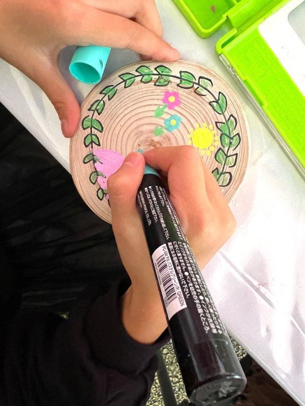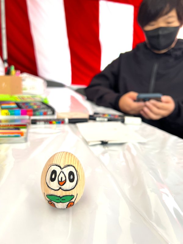 木のたまご、木のコースター、木のカプセルトイは好きな色にペイントしたり、絵を描いたりと素敵な作品ばかりでした。