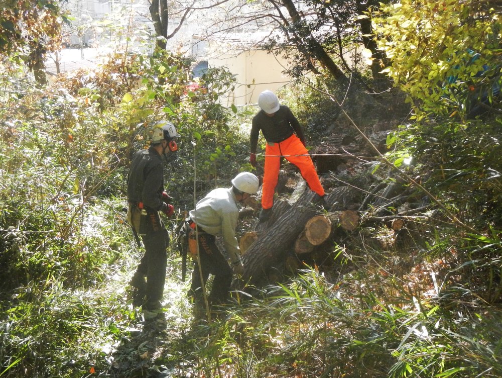 緑の募金森林整備推進事業「町田市立小中一貫ゆくのき学園 学校林の整備」の第3回目の活動として、「豊ヶ丘の杜保全の会」のご協力により、枯損木(アラカシ)の伐採、前回伐採したコナラの処理を行いました。