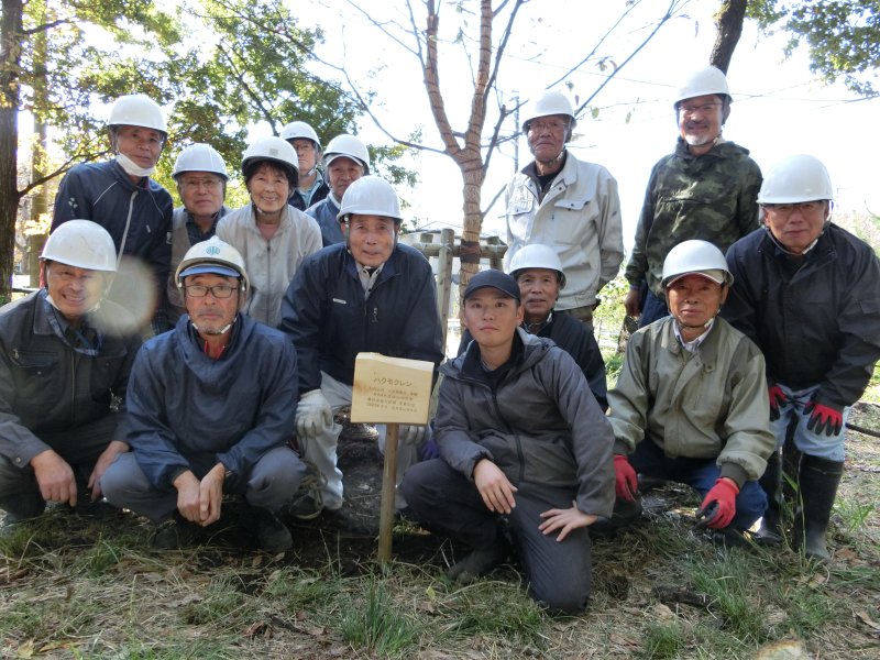 美原里山地区(羽村市)の緑地整備保全事業。ハクモクレンの植樹や花壇整備、草刈り、枝打ち等の多様な活動を行いました。